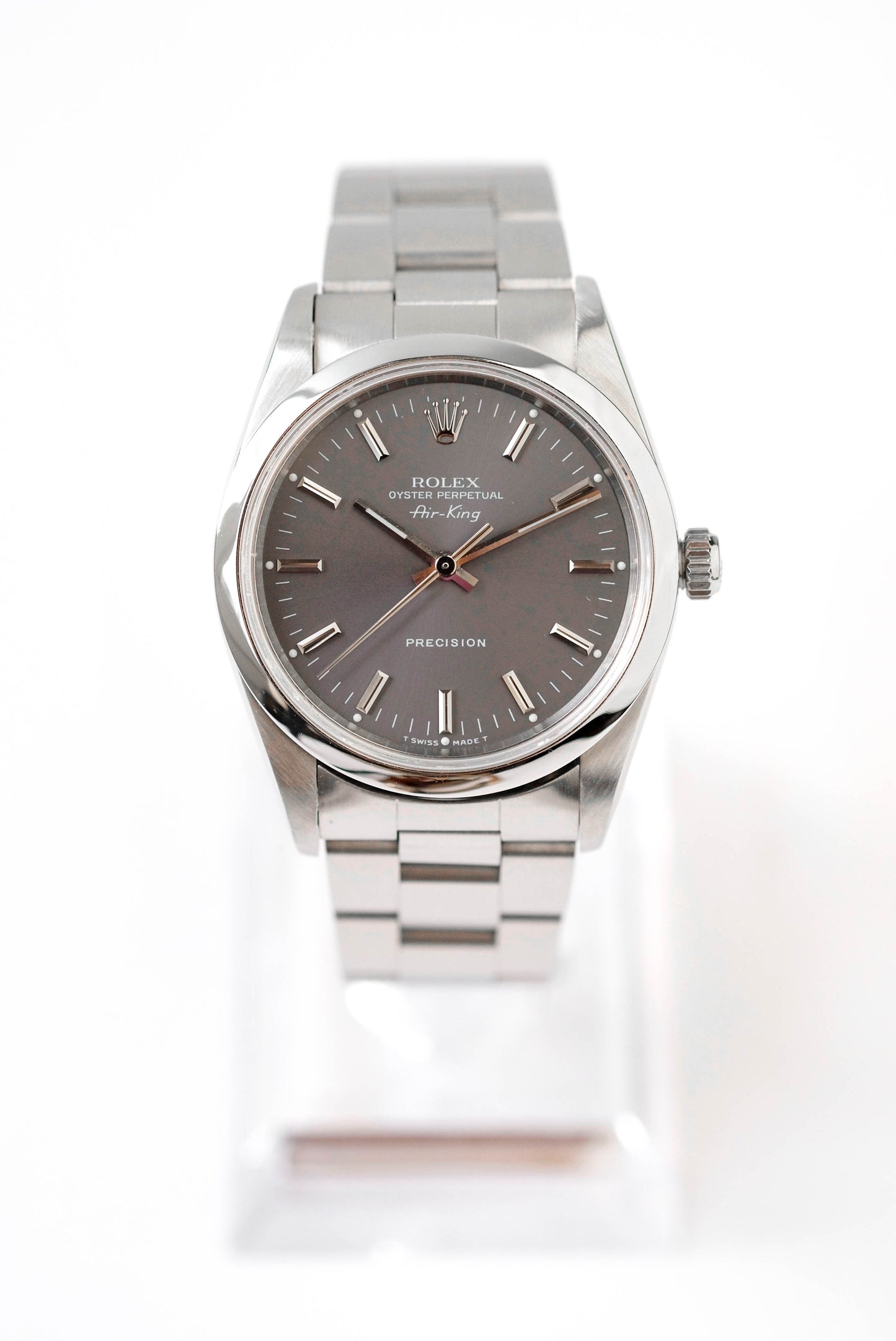 La Air King est un modèle que nous considérons comme incontournable que nous ne cesserons jamais de recommande. Par son élégance, le cadran anthracite s'accorde avec tout.