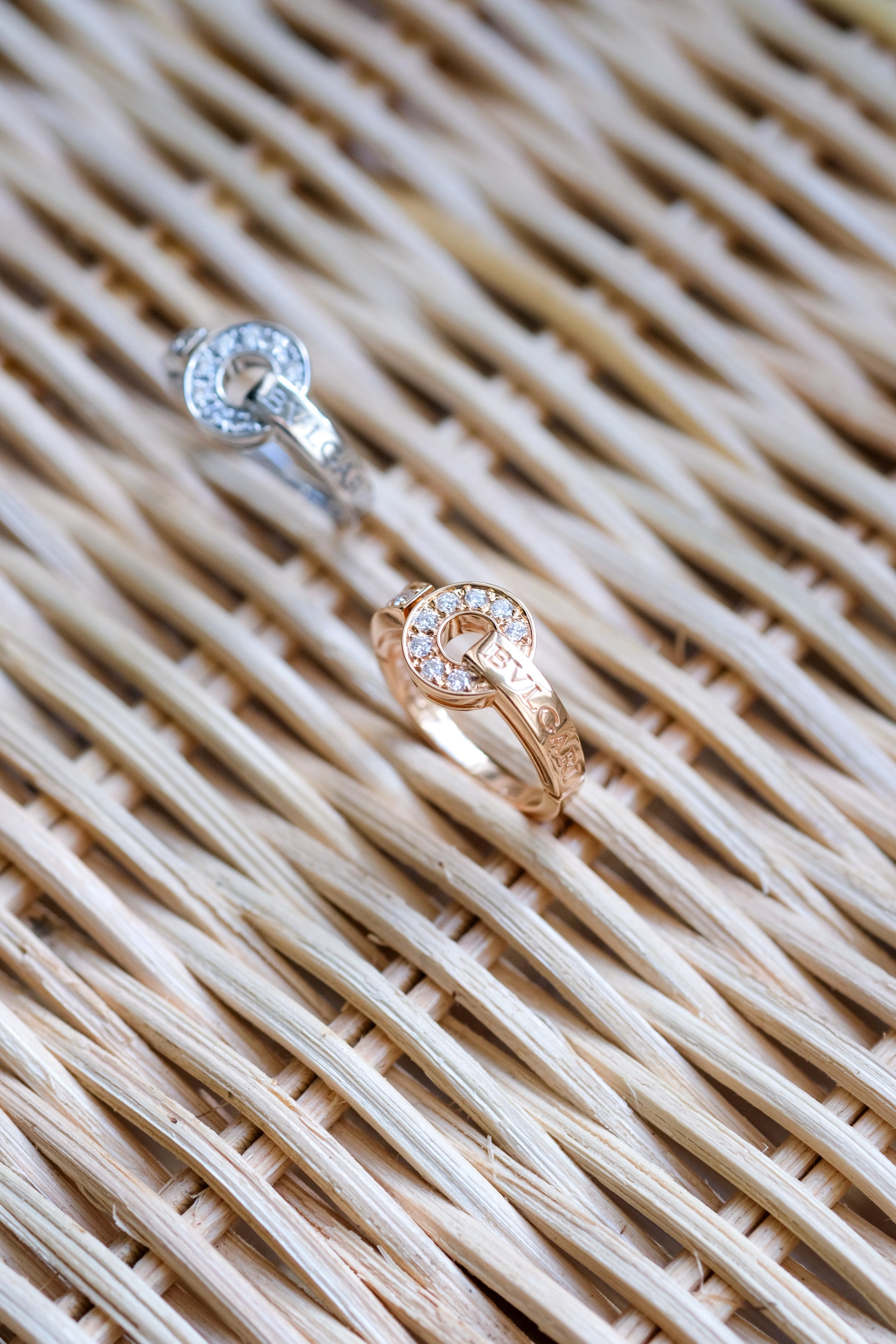 Curved lines, a visible brand name: this is the "Bvlgari" collection from the eponymous jewelry house. One of the most recognizable elements of the collection is, in fact, the double engraving "Bvlgari Bvlgari." This logo echoes the principle of the inscriptions on ancient Roman coins from which the collection draws its inspiration.