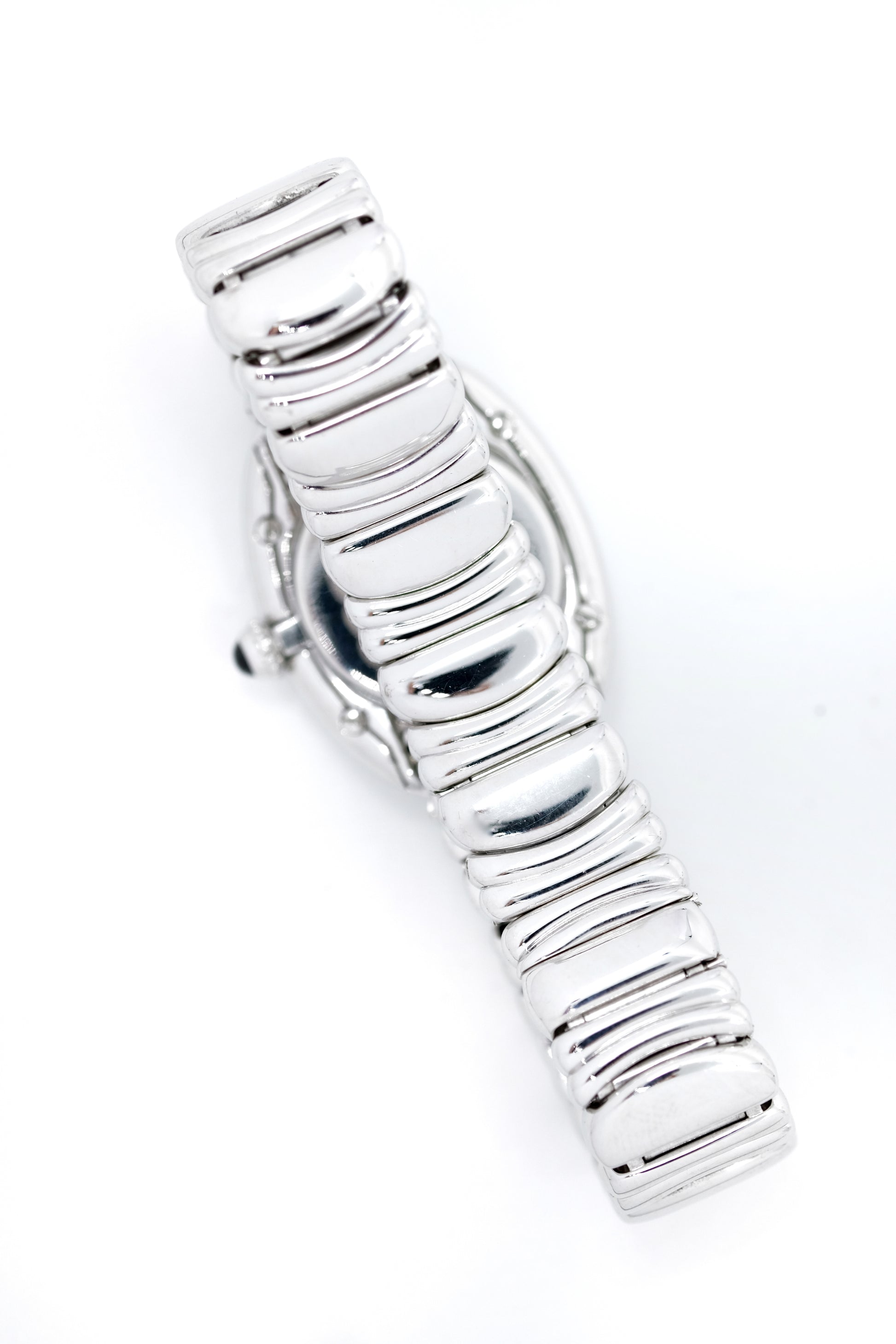 The round and voluptuous case surely makes the Baignoire the most feminine watch ever designed by Cartier. Many powerful or iconic women made it their signature watch. Yet another design as original as it is beautiful from Cartier! The alternation of slightly different links is evidence of high-quality design and goldsmith work.