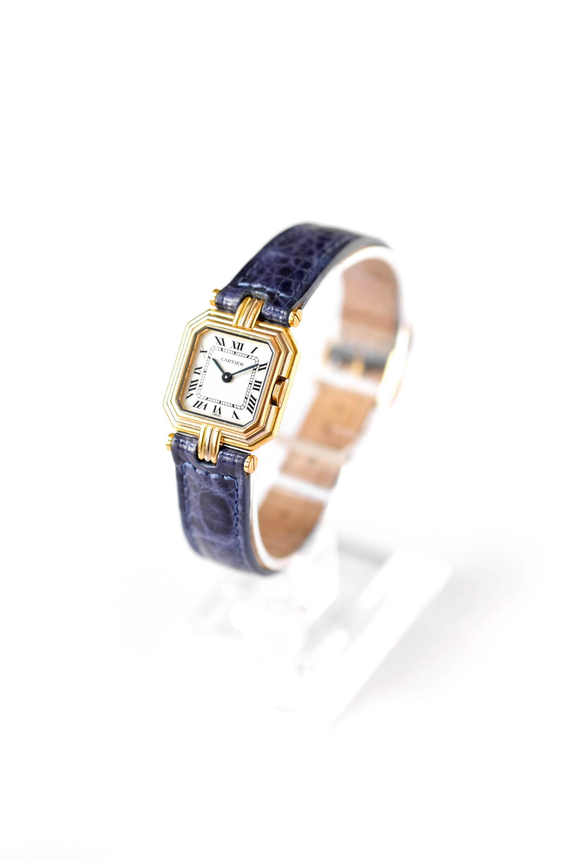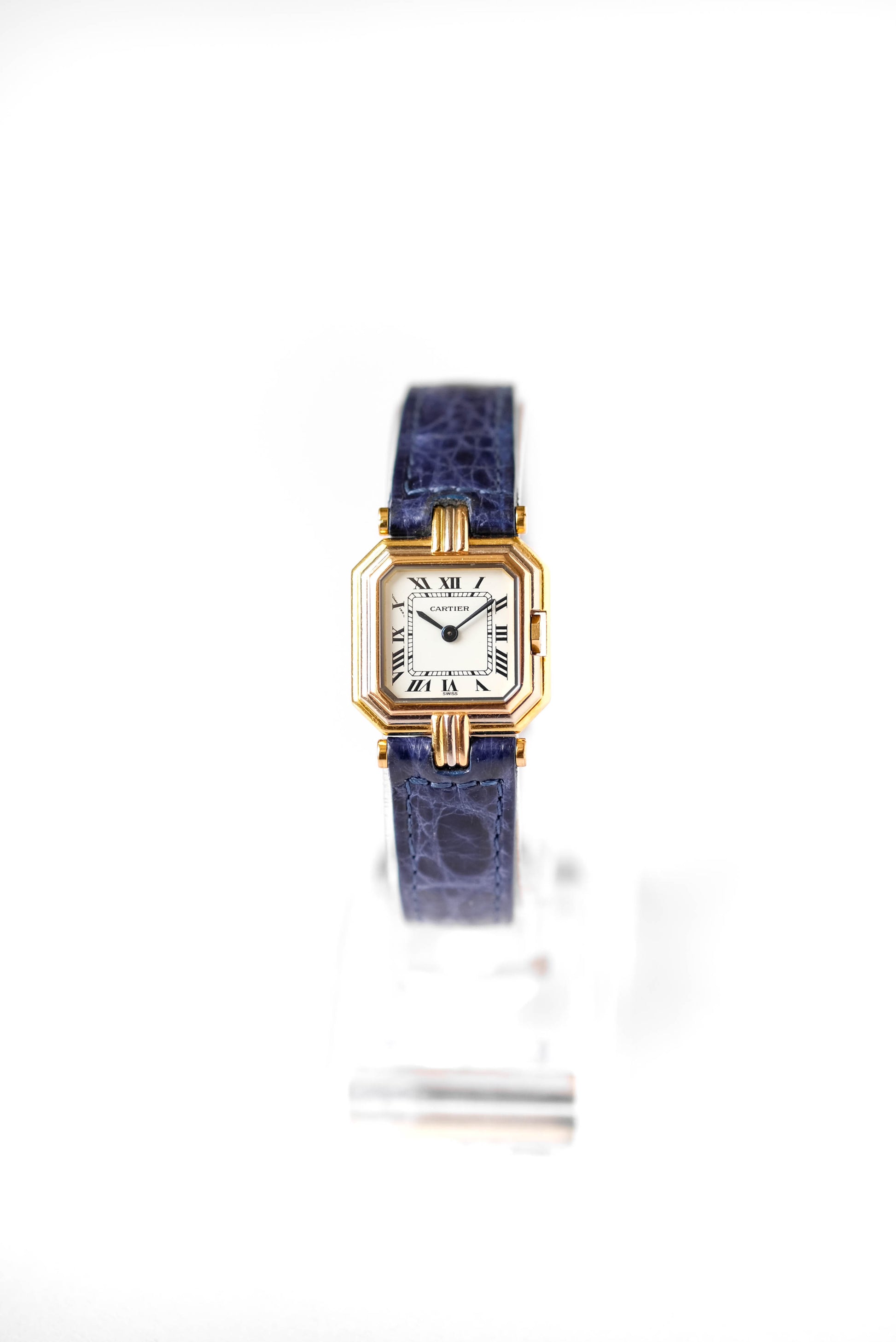 The Cartier Ceinture never ceases to be talked about, especially in its Trinity guise. A model that has become a classic. Its dial incorporates all the traditional Cartier codes: gold case, overflowing side godrons, railroad-shaped minute scale and blue hands. If the classic size has proven itself, the small size is less common. However, its smaller dimensions make it a piece full of charm, elegant, practical and very comfortable on the wrist. Thanks to its white dial and its trois-ors case, so dear to Cartier, this Ceinture Trinity goes not only with the strap color of your choice but also with all kinds of jewelry.