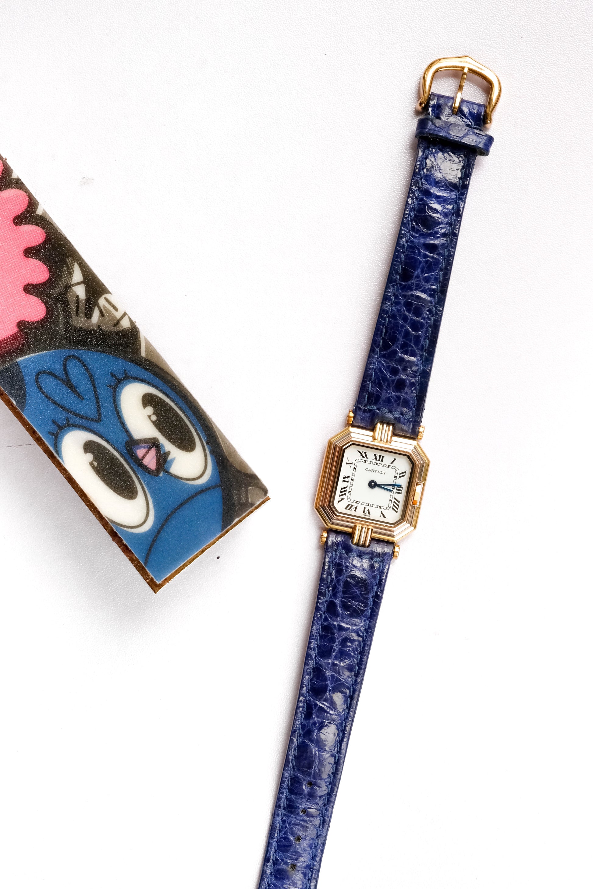 18-carat yellow gold, pink gold and white gold / Gold-plated Cartier buckle / Cartier strap