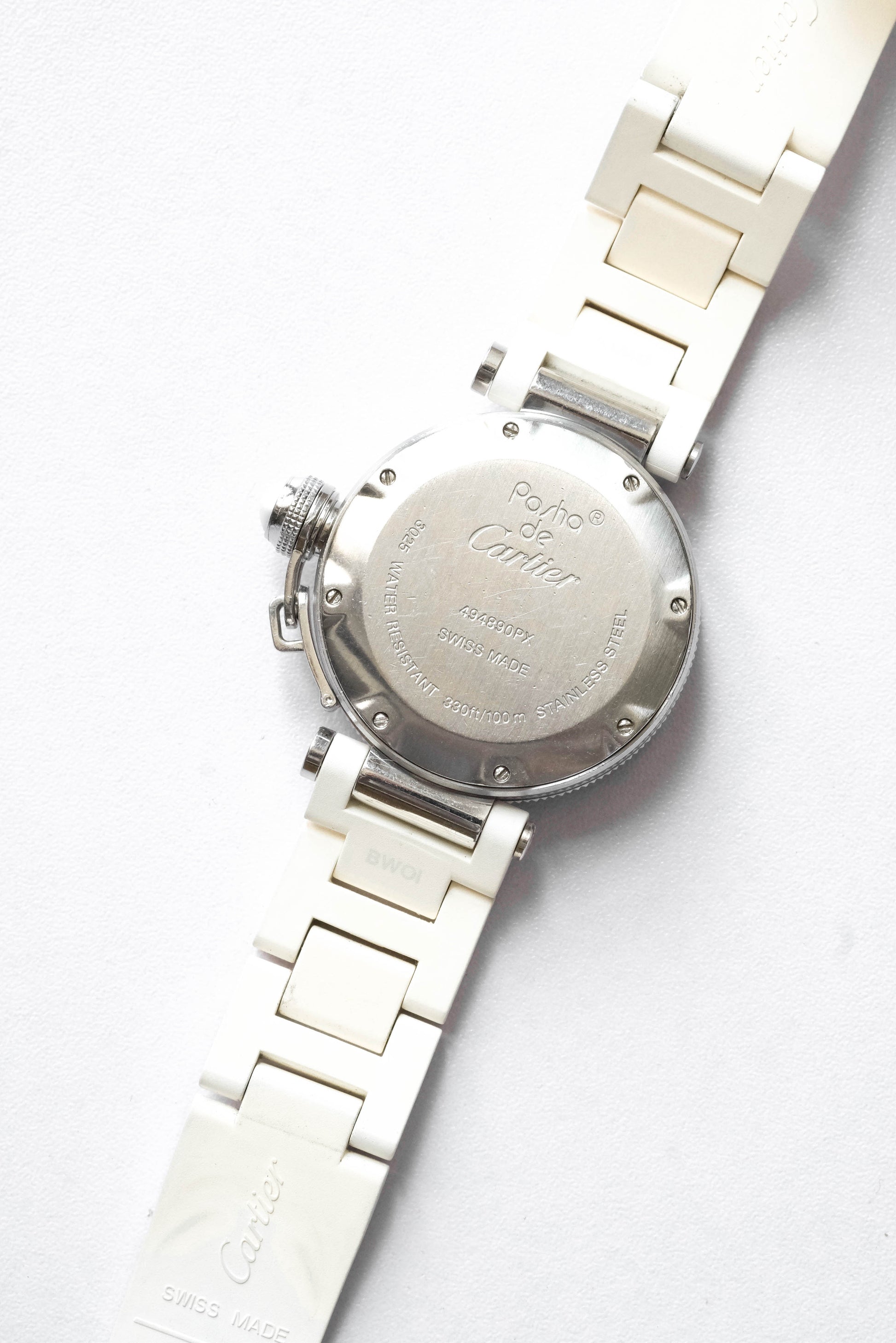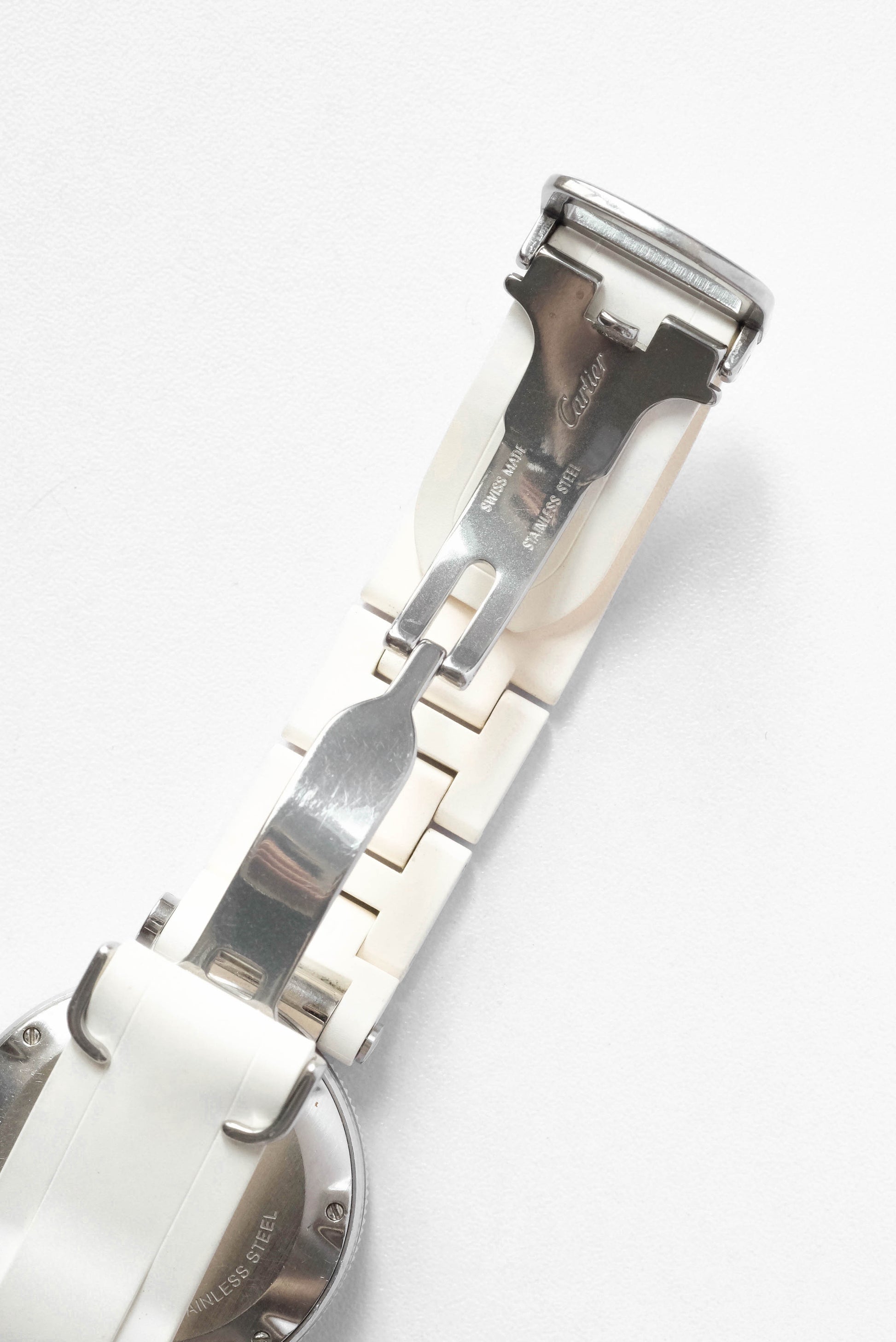 Stainless steel case and caoutchouc Cartier bracelet on stainless steel folding clasp