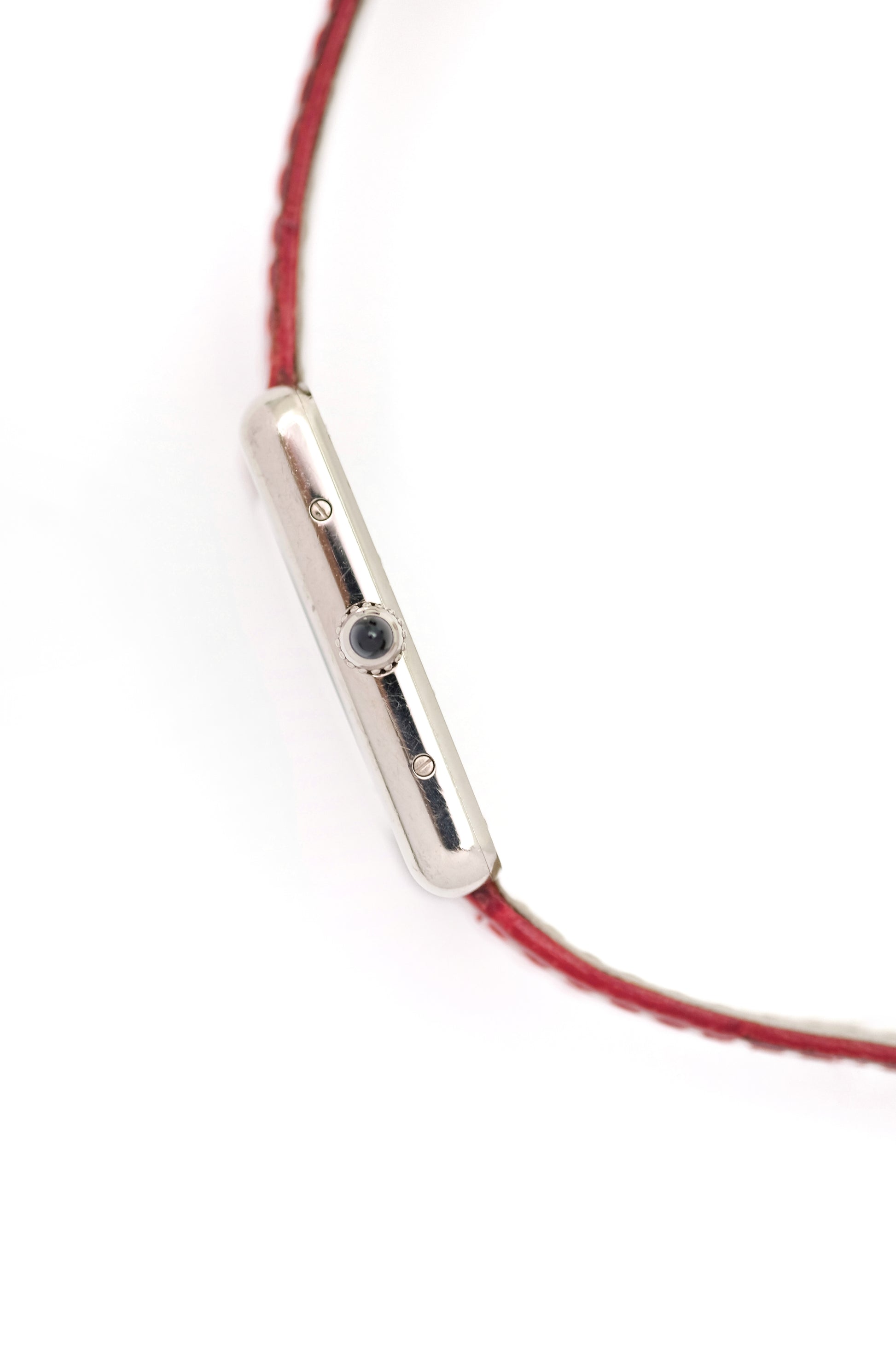 Cartier 18K white gold case and ardillon buckle. Cartier red alligator leather strap.