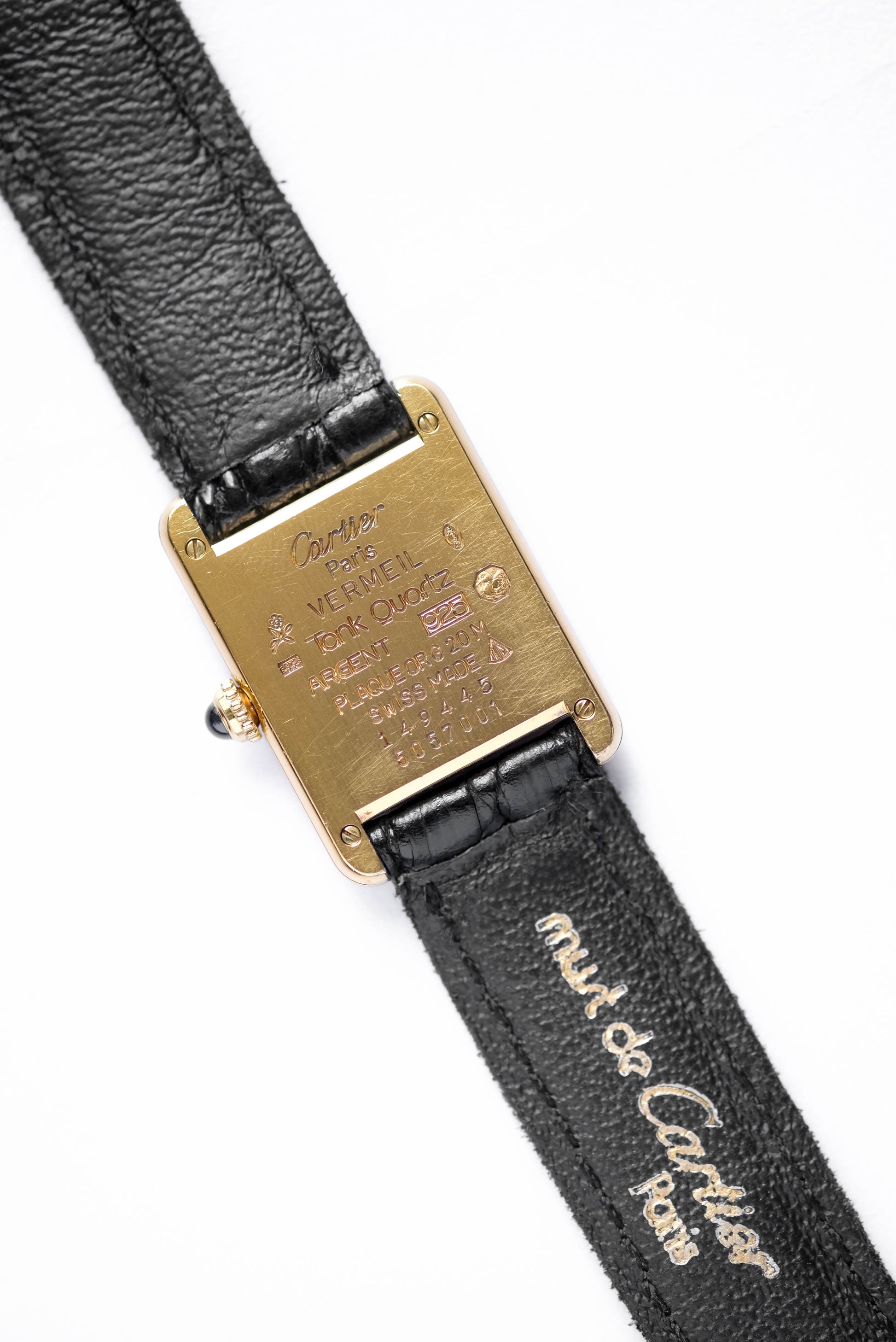 Cartier case and pin buckle in vermeil (gold-plated silver). Cartier leather bracelet.