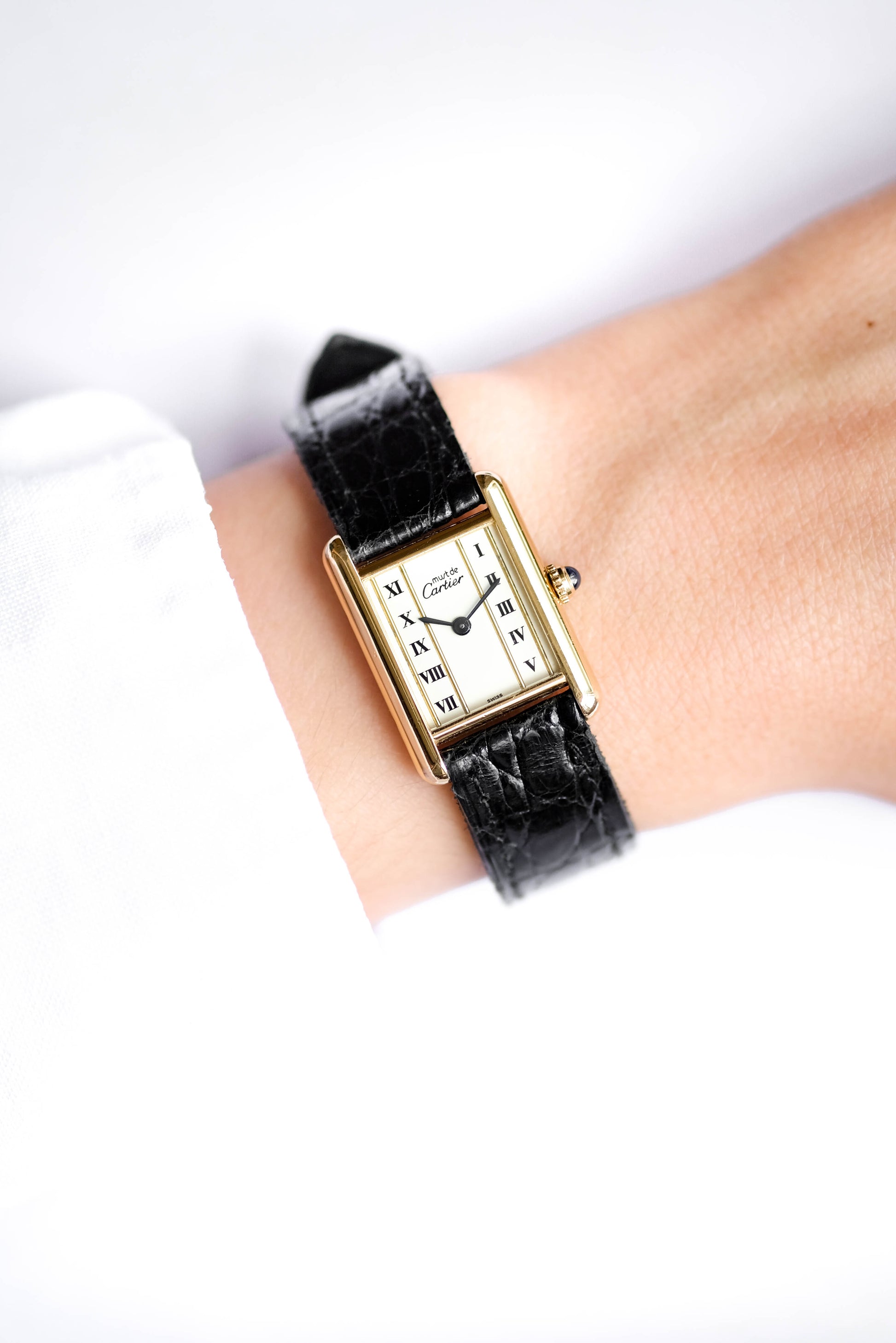 The first Tank, known as Normale, imagined in 1917, gave way, in 1922, to the Tank Louis Cartier, whose design remains unchanged. Through its Must line, Cartier intends to revisit the codes of luxury by offering more accessible pieces, like Van Cleef & Arpels and its Boutique . It was not until 1976 that the Tank Must was presented, as the first gold plated watch for La Maison, then available in a wide variety of dials. It's a beautiful and bold nod to its older sister : the less funky Tank Louis.