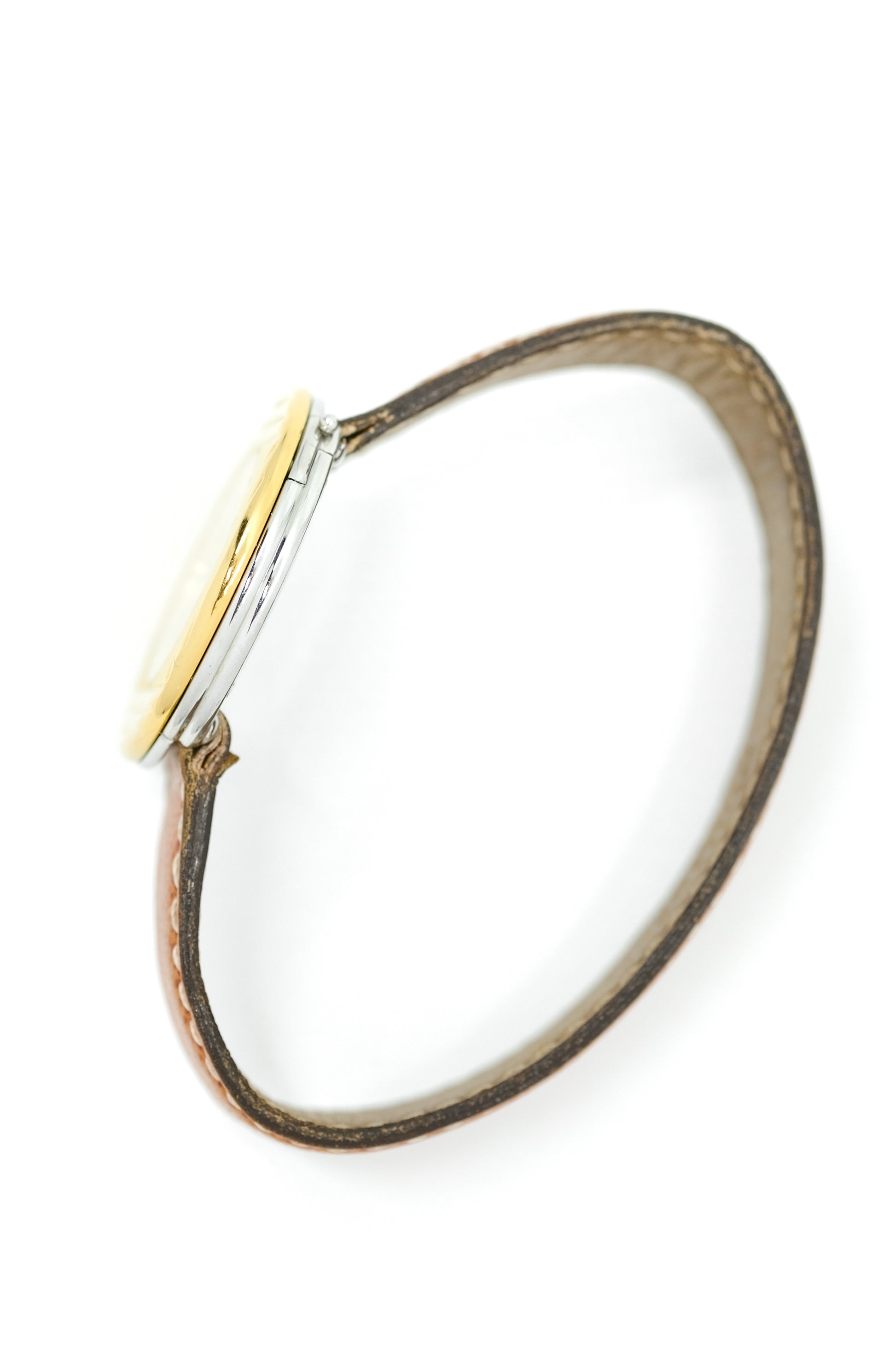 18-carat yellow gold case. Brown calf leather strap signed Poiray.