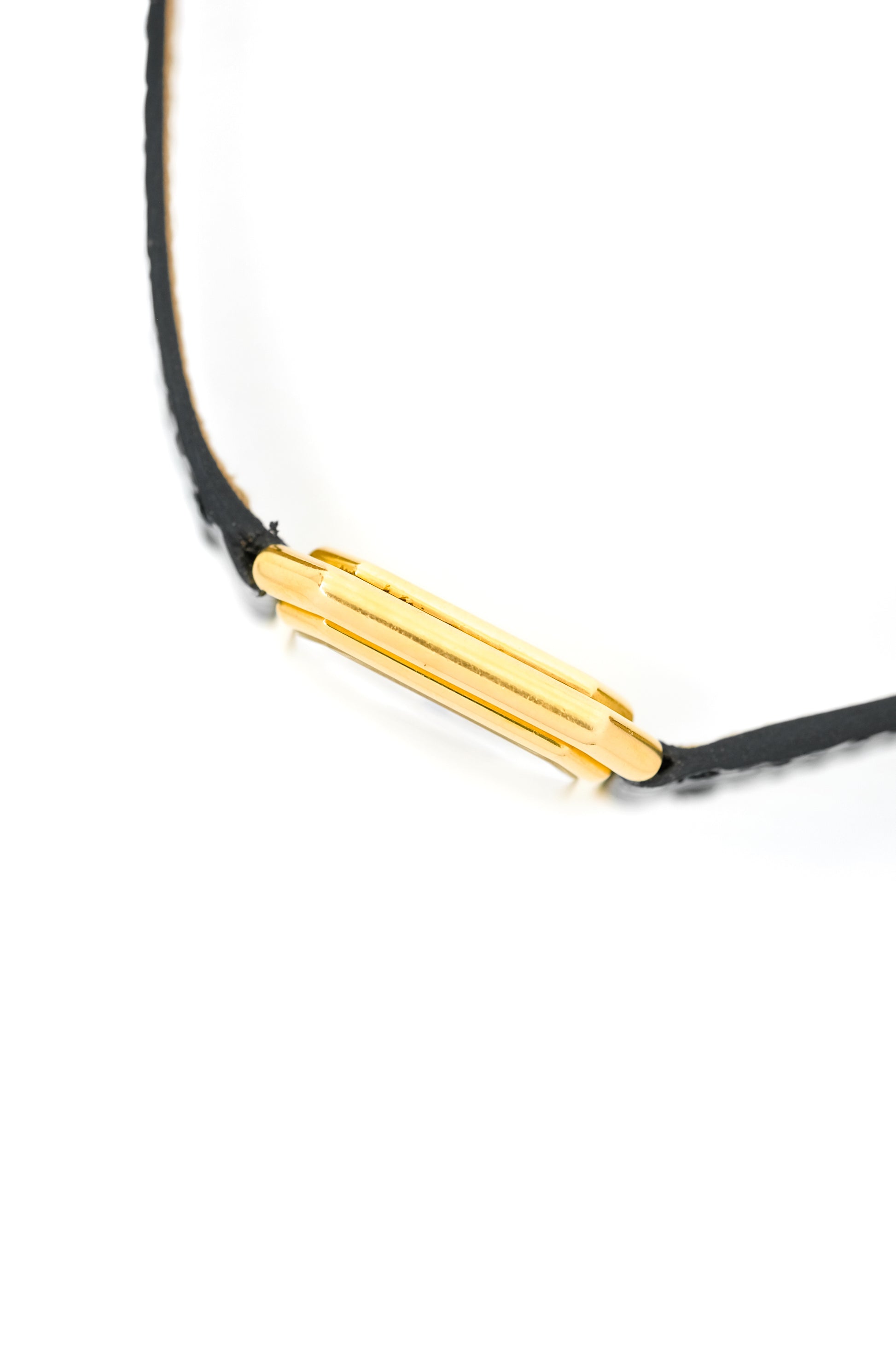 Un boîtier carré à angles biseautés, le godron qui protège la couronne : pas de doute, il s'agit bien d'une Ceinture ! Carré et plat, ce modèle est aussi élégant qu'agréable au poignet. Même s’il est fin, le godron de sa boîte (la vague d'or le long de la boîte) permet de donner à la Ceinture une vraie présence au poignet.