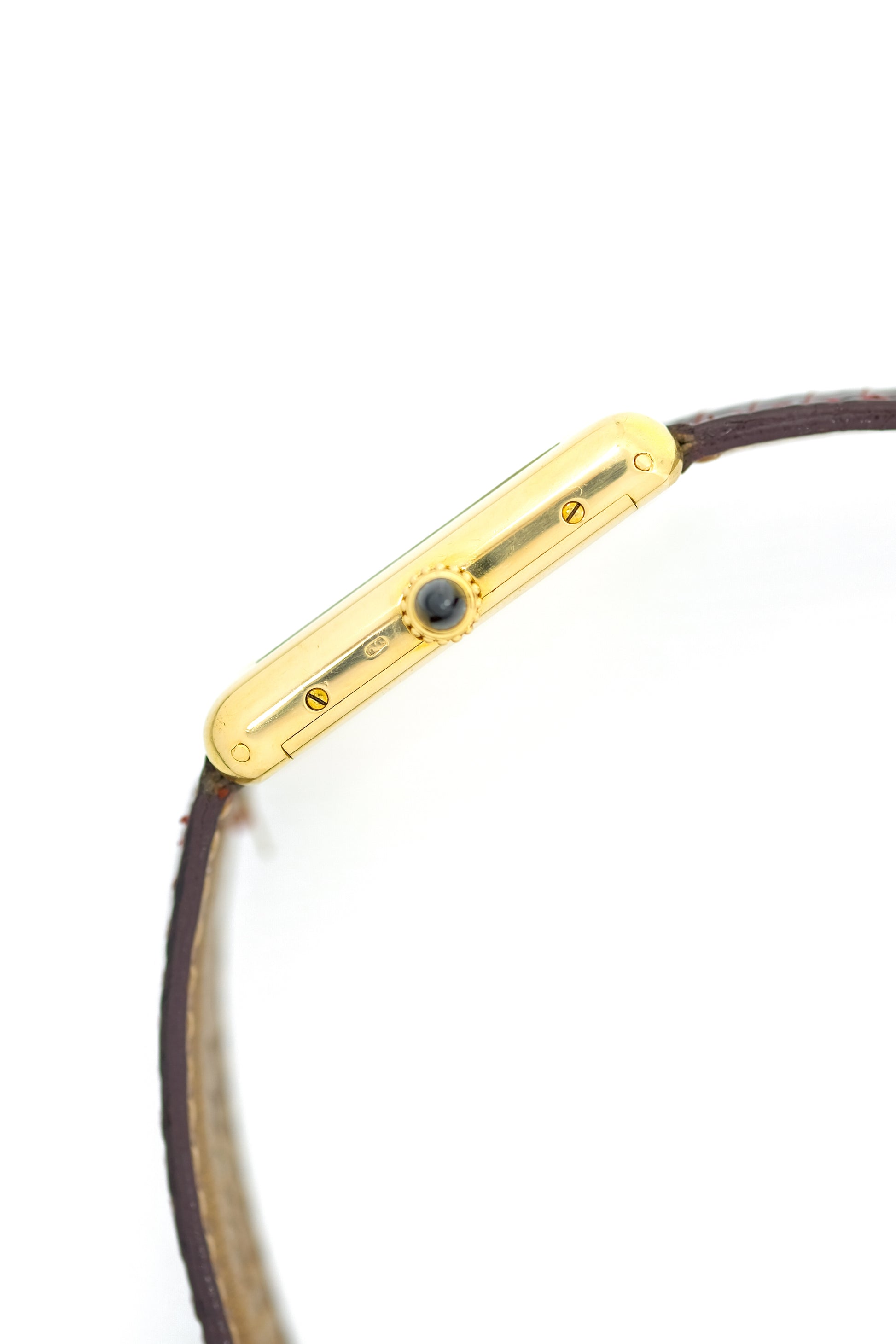 Grâce à son cadran blanc, elle peut être associée à la couleur de bracelet de son choix, selon les goûts et les saisons, et présente une boucle ardillon Cartier en or jaune 18 carats.