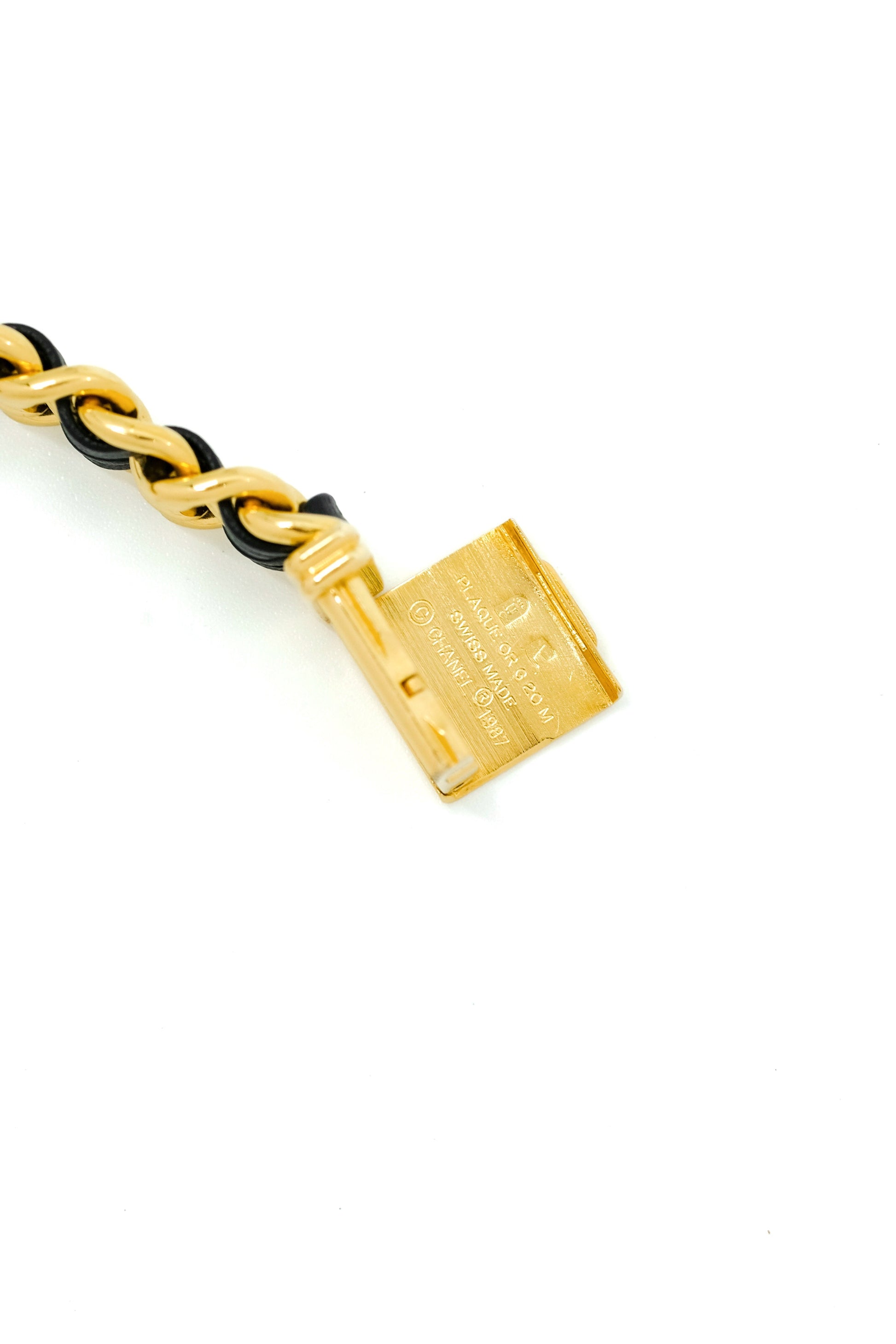 Boîtier plaqué or. Bracelet Chanel plaqué or et cuir. Montre accompagnée de ses documents et pochette SAV Chanel.