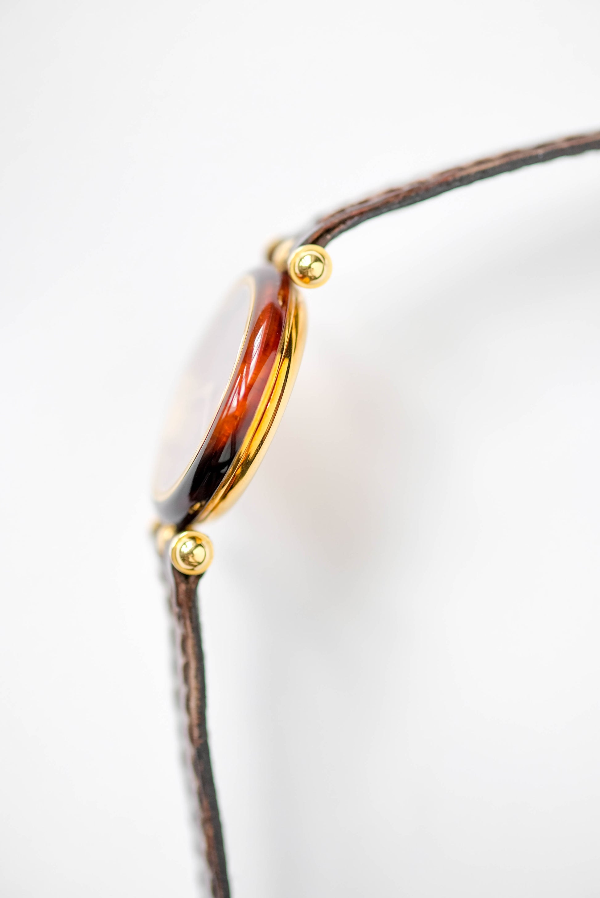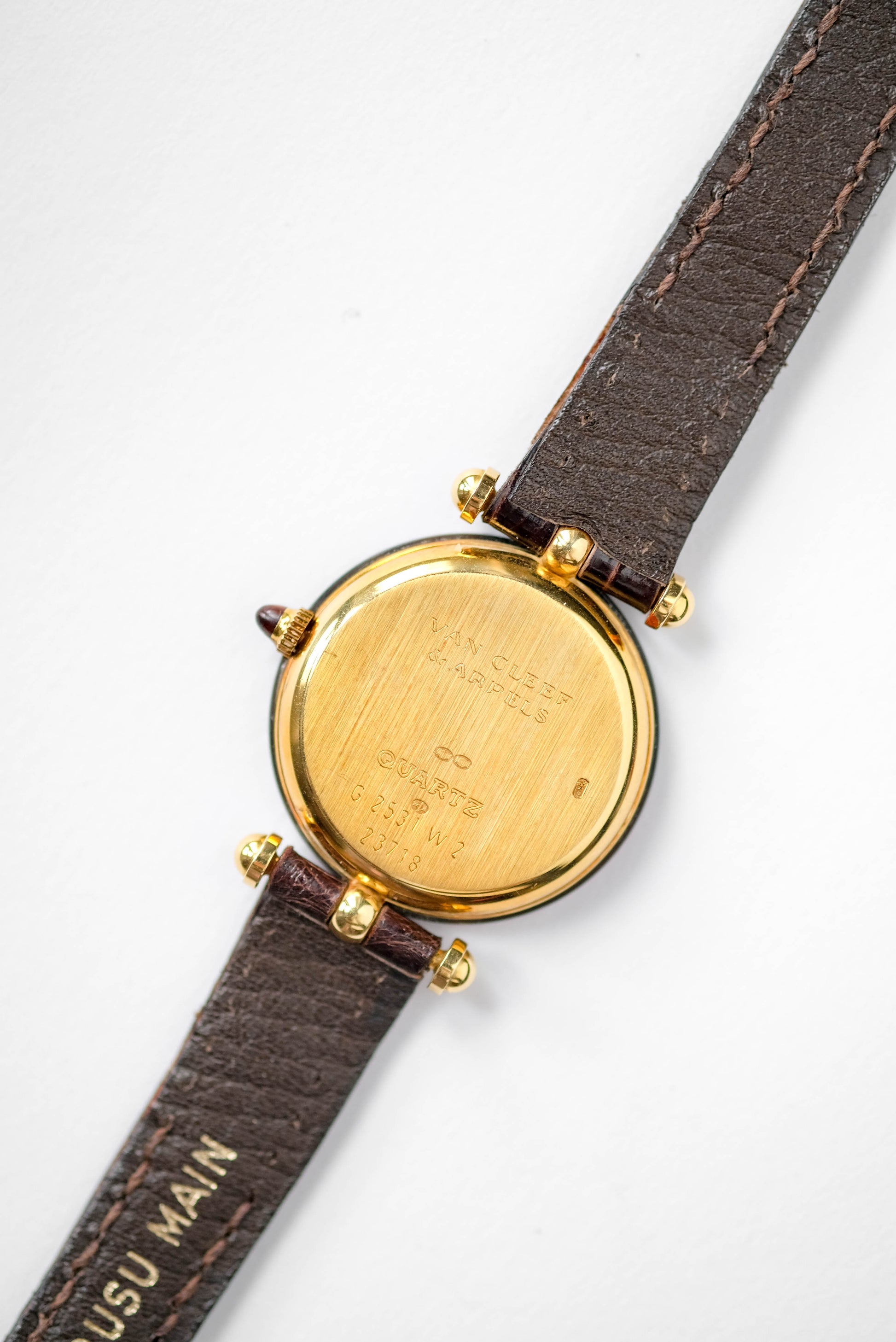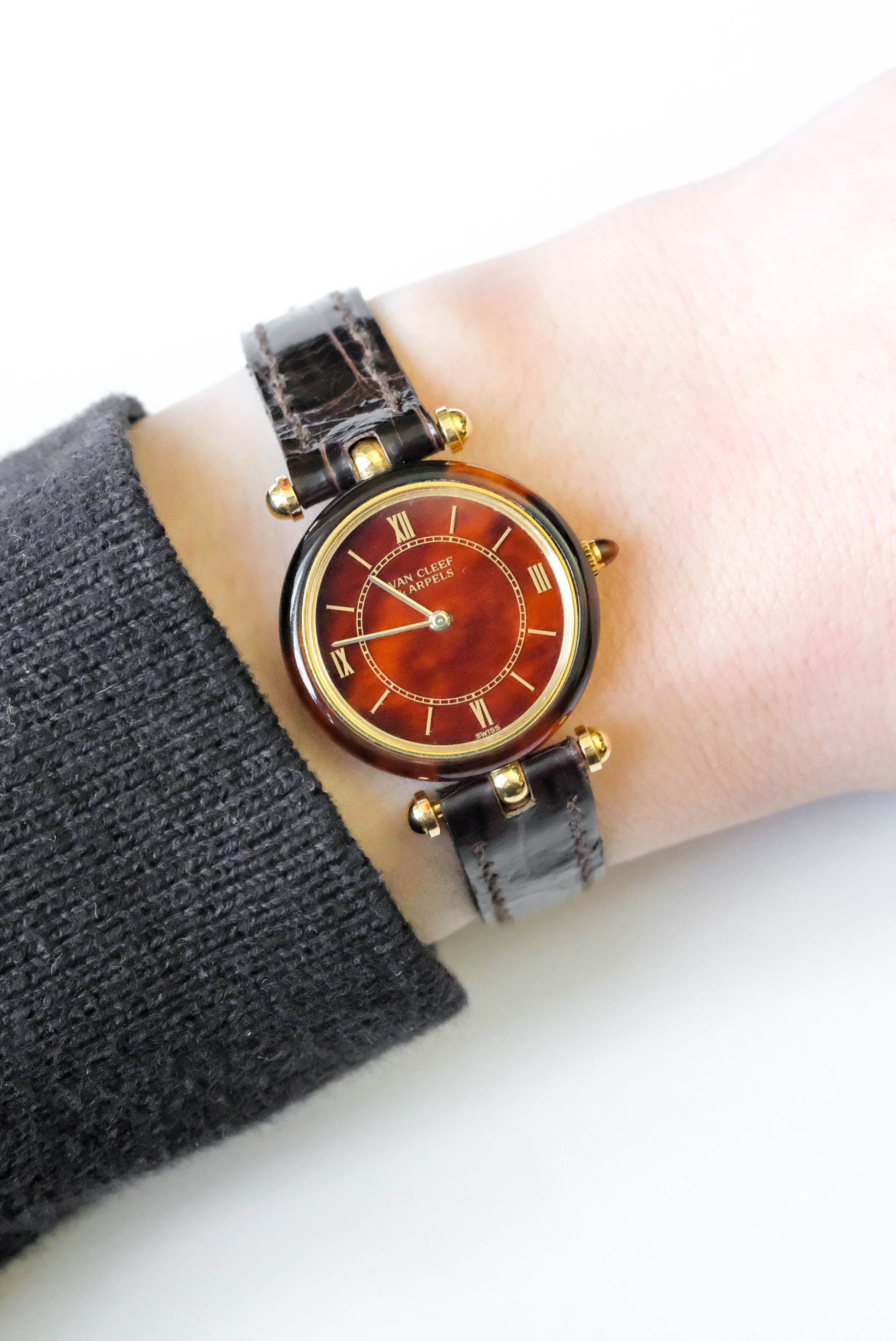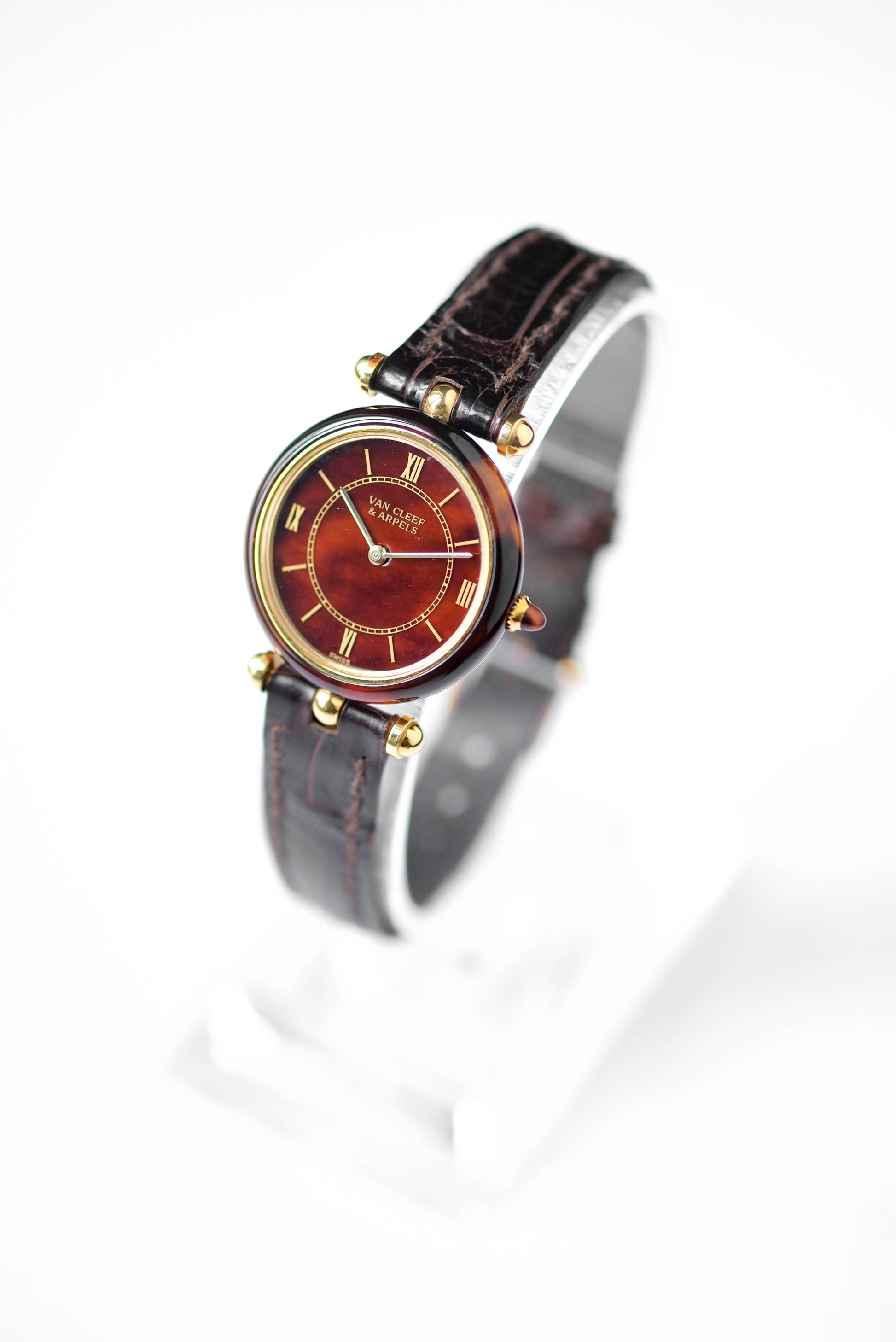 Boîtier en or 18 carat et écaille de tortue / boucle ardillon VCA en or jaune 18 carats / Vient avec une pochette et deux bracelets cuir Van Cleef & Arpels